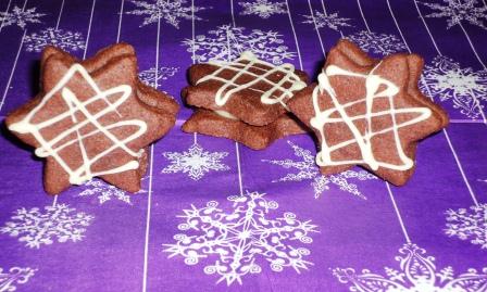 | dunkle Schokosterne mit weißer Schoko-Orangenfüllung |