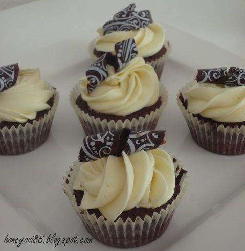 Ich habe mich für Schokoladen Cupcakes mit weißer Schoko-Ganache entschieden.