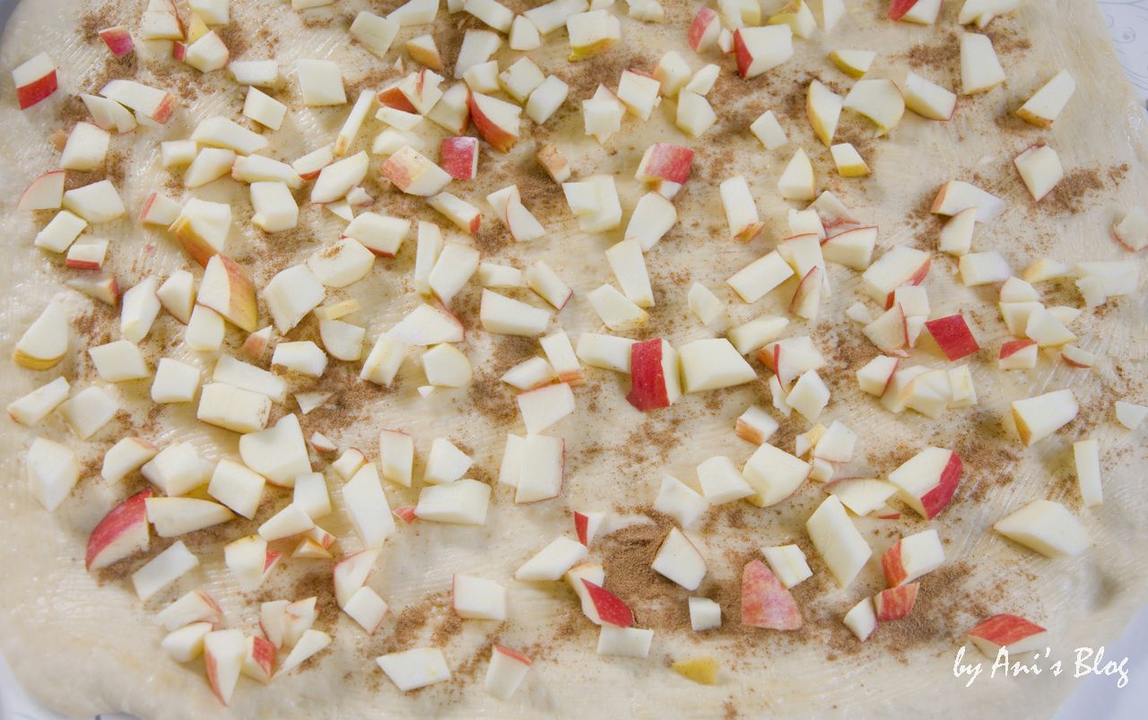 | Schritt 5: Teig mit Äpfeln und Zimt belegen |