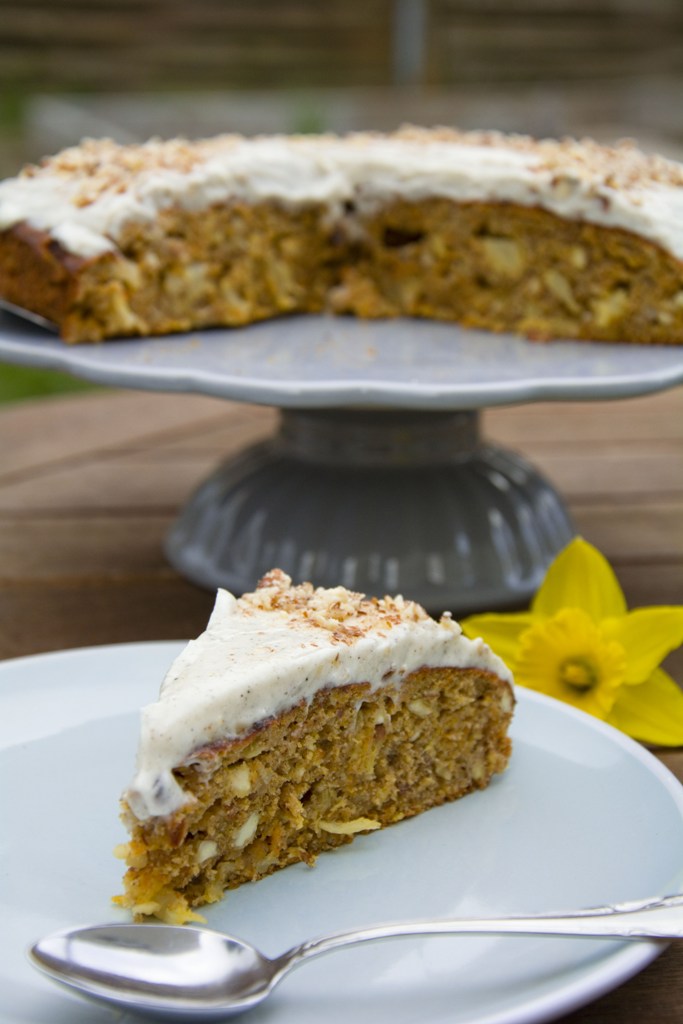 Lange Zeit habe ich den Karottenkuchen dann vergessen. Bis ich vor einiger Zeit auf Pinterst rumgestöbert habe und dabei den unglaublich gut aussehenden Karottenkuchen von Nadine auf stylish-living entdeckt. Der Pin wurde direkt gesetzt, allerdings dauerte es eine Weile, bis ich selbst einen Karottenkuchen gebacken habe. Zu meinem Geburtstag wurde meine Lust auf einen Karottenkuchen wieder größer, außerdem wollte ich einen etwas weniger Kalorienreichen und Kohlenhydratlastigen Kuchen backen. Dieser musste allerdings vegan werden, weil ich eine Veganerin eingeladen habe und weil ich auch dieses Rezept unbedingt probieren wollte. Leider habe ich davon keine Fotos gemacht, aber sobald ich diesen Kuchen nochmal backe, folgt das Rezept auf jeden Fall.