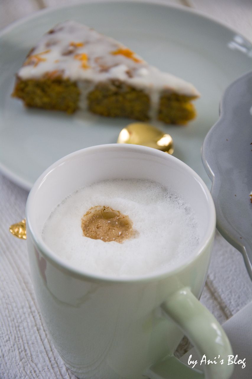 Nach einem Anflug von spontaner Lust auf Frühjahrsputz bei dem ich alle Fenster und Fliesen und was sonst im Winter vernachlässigt wurde geputzt habe, habe ich nebenbei diesen Karottenkuchen gebacken. Meine Vorfreude war schon riesig und als endlich alles fertig geputzt war und die Fotos geschossen, konnte ich ihn genießen – diesen unheimlich leckeren Karottenkuchen mit dem cremig-leichtem Topping aus Kokosmilch, zusammen mit einer Tasse Cappuccino. Kommentar von K. „Mhh, was ist das denn da oben drauf, das ist so schön leicht?“. Und was soll ich sagen, er hat Recht, ich habe den Rest vom Kokosmilch-Topping mit klein geschnittener Orange als Dessert gegessen. Mhh ist das lecker leicht. ?