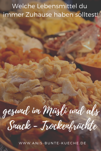 Fürs Müsli oder wenn dich der Süßhunger packt sind Trockenfrüchte ideal. Sie halten ewig und bringen natürliche Süße nicht nur ins Müsli, sondern auch beim Backen. Außerdem enthalten sie viele wichtige Vitamine und Mineralien.
