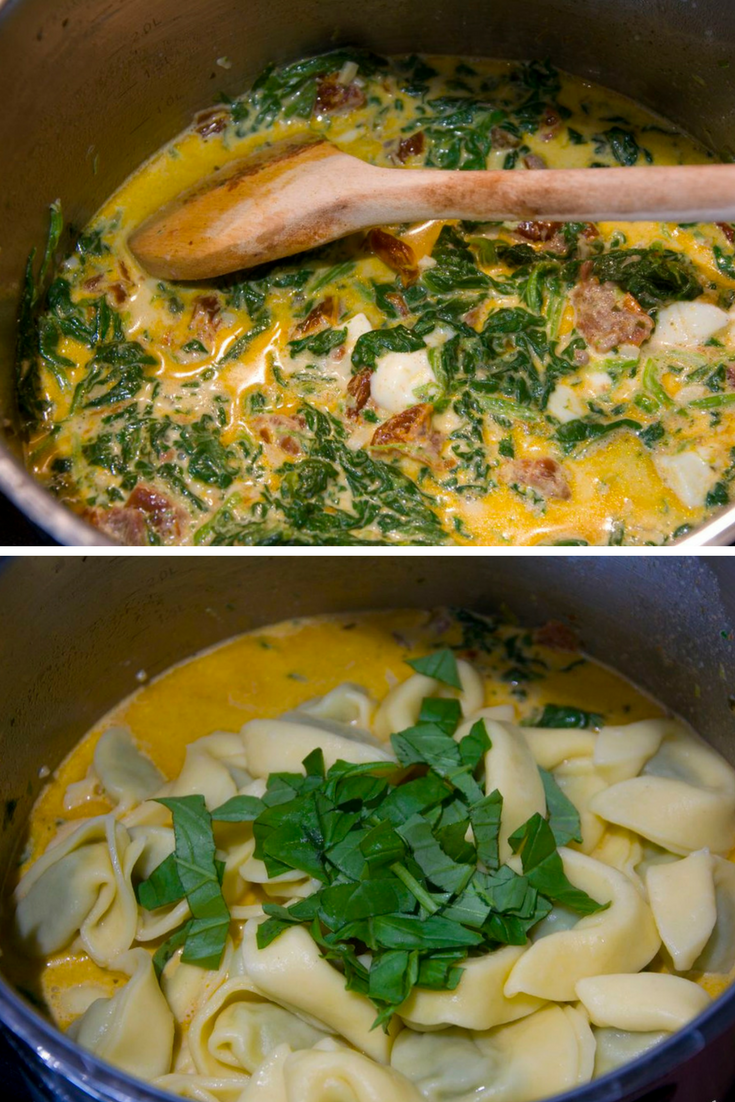 echtes Wohlfühlessen: Spinat Tortellini in cremiger Mozzarella-Sauce und sonnengereiften getrockneten Tomaten