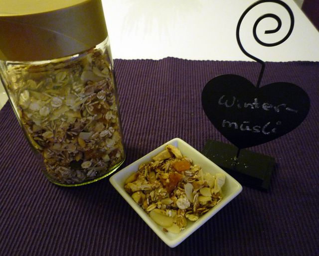 Passend zu den kalten Temperaturen derzeit habe ich ein Winter-Müsli gemacht. Das ist ein Rezept mit Bratapfelgeschmack und Birnen. Mhh, so lecker kann Winter sein!