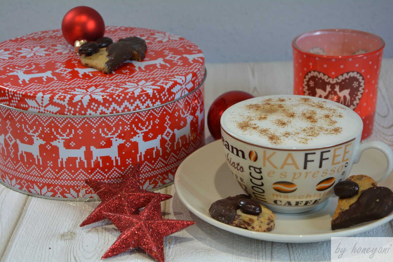 Noch habe ich euch noch nicht alle Plätzchenrezepte von meinem Weihnachtsteller verraten. Die Lieblings-Weihnachtsplätzchen von meinem Freund sind die Schoko-Cappuccino-Herzen. Da musste ich einige verstecken, damit noch ein paar übrig waren, um sie zu fotografieren. Schon beim Dekorieren war der erste Schwung der Herzen weg.