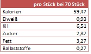 Nährwerte pro Stollenkonfekt bei insgesamt 70 Stück